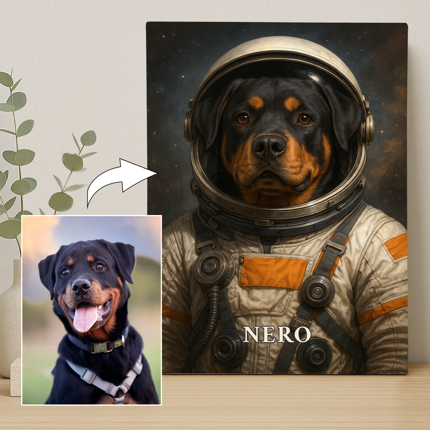 Twój pies w roli astronauty? Teraz to możliwe! Personalizowany druk na płótnie sprawi, że zwykłe zdjęcie Twojego pupila zamieni się w spektakularny portret, który zachwyci realizmem i oryginalnym stylem. To idealny sposób, aby podkreślić niezwykły charakter czworonożnego przyjaciela i uwiecznić go w wyjątkowej, artystycznej odsłonie.
